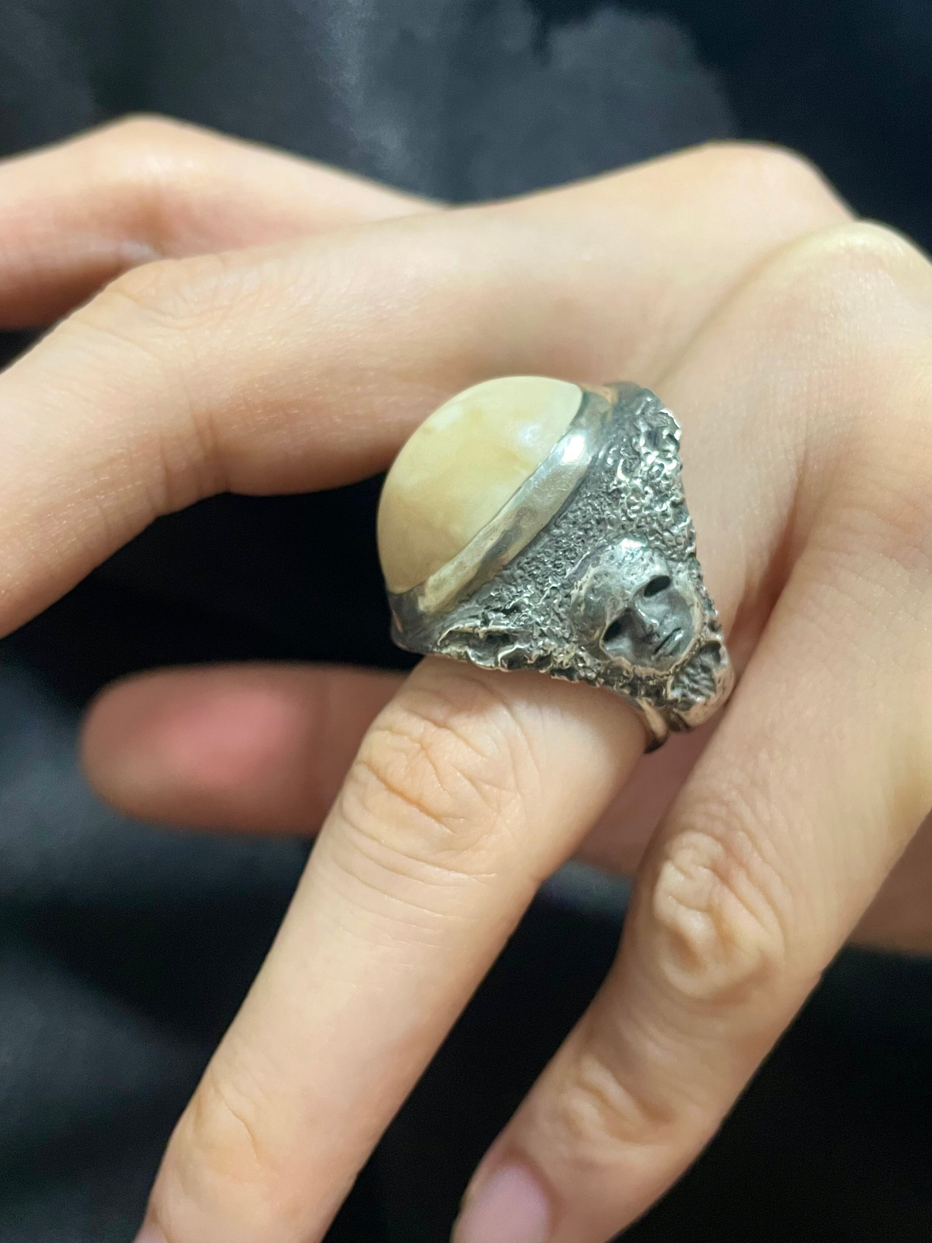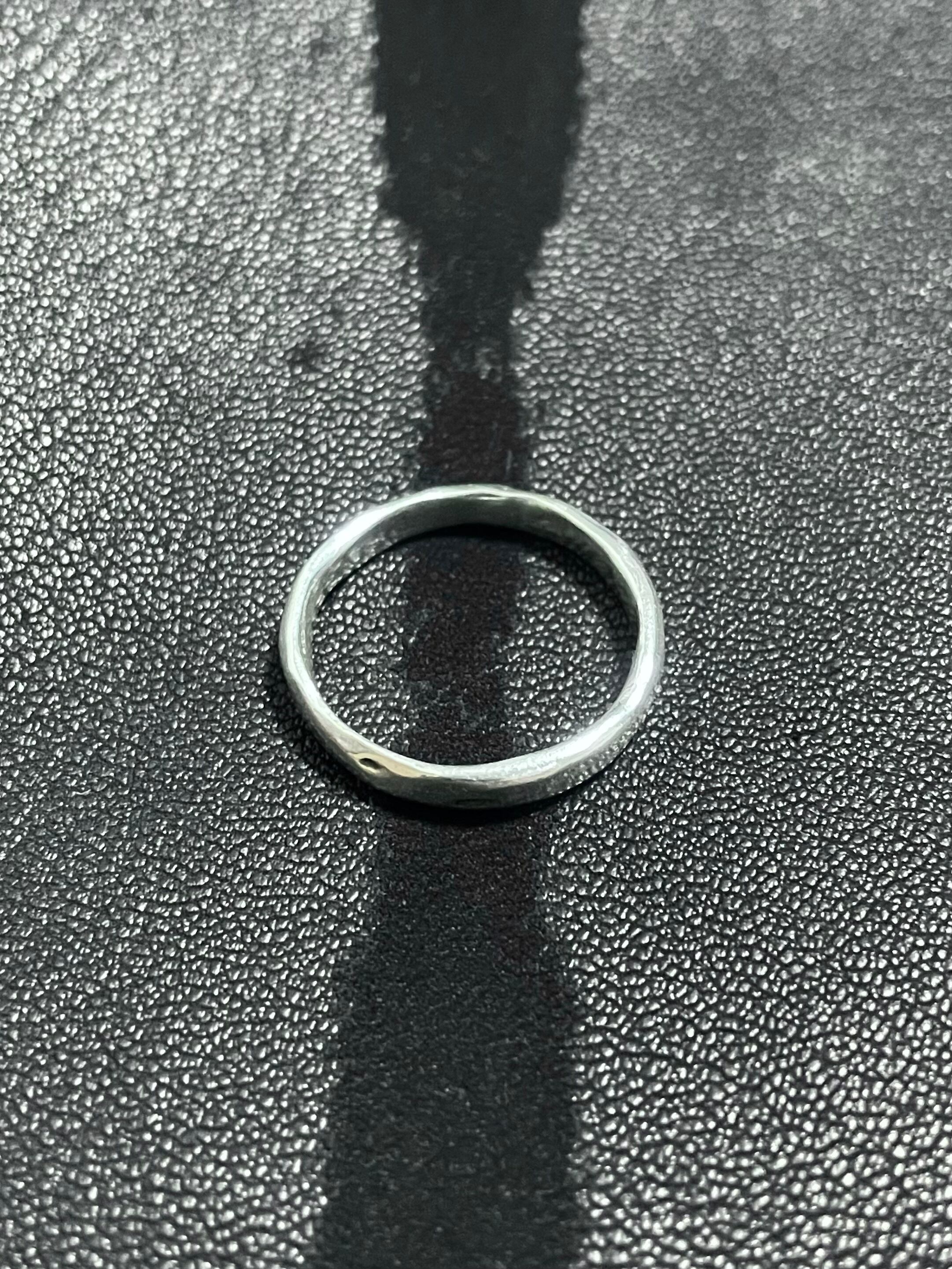 形状は歪で使い込まれた様な打痕や傷跡があり、古くから代々受け継がれてきた雰囲気のあるリングです。お守りの様に常に身につけられ幾度と無く困難を乗り越え、時には身代わりになってくれたこともあったであろう守護具です。