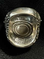魔法円部分はくぼんでいます。サイズ棒で測るサイズよりも大きいサイズ感となっている為、着用したい指のサイズよりも1〜2号小さいサイズのリングをお選び頂くとフィット感が良くなります。